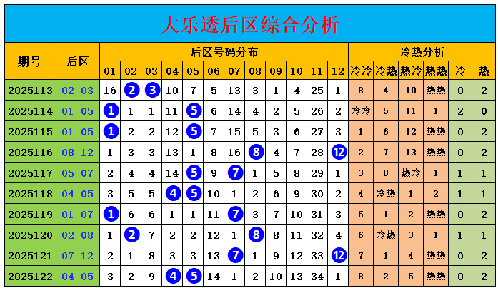 上期回想:大乐透第2025122期:前区02、03、06、16、17佛山聪乐五金制品厂,后区04、05,前区奖号和值为44,三区比为3:2:0,后区开出热热组合04、05
