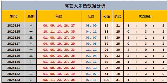 大乐透2025133期开奖奖号前区04,11,23,27,35。后区07,11,前区和值100,跨度31佛山聪乐五金制品厂,012路比1:1:3