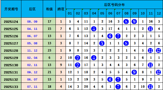 上期后区开出偶奇组合07,11。最近10期奇偶比10:10,奇偶数奖号出号率交流。本期保举偶奇组合02,09