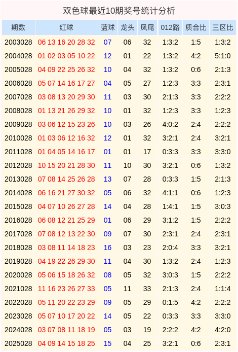 双色球积年同时奖号分析